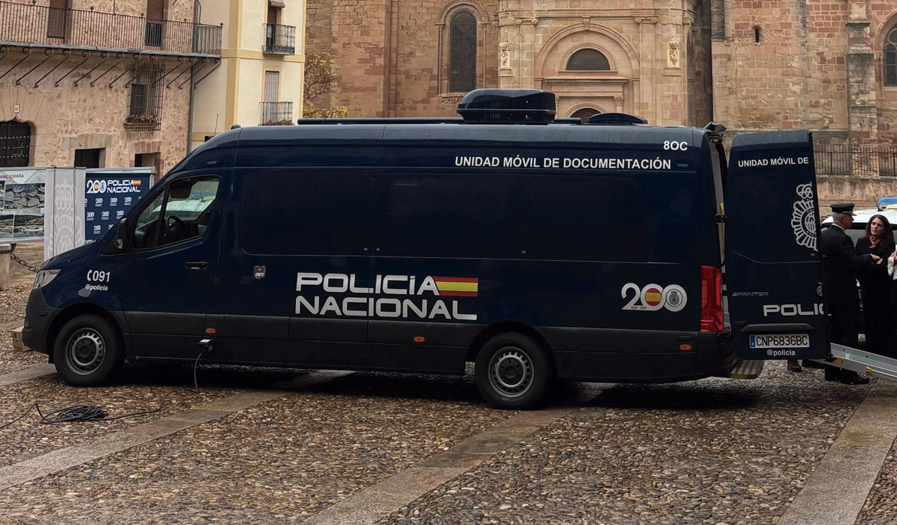 Vehículo de la Policía Nacional equipado para hacer los trámites