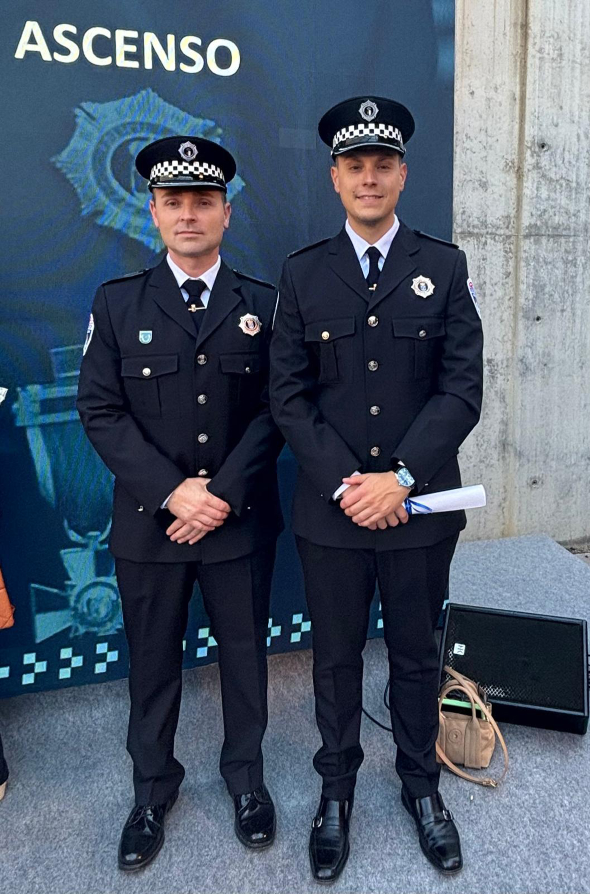 Los dos agentes que han conseguido el ascenso a oficial. Fotografía: Ayuntamiento de Azuqueca