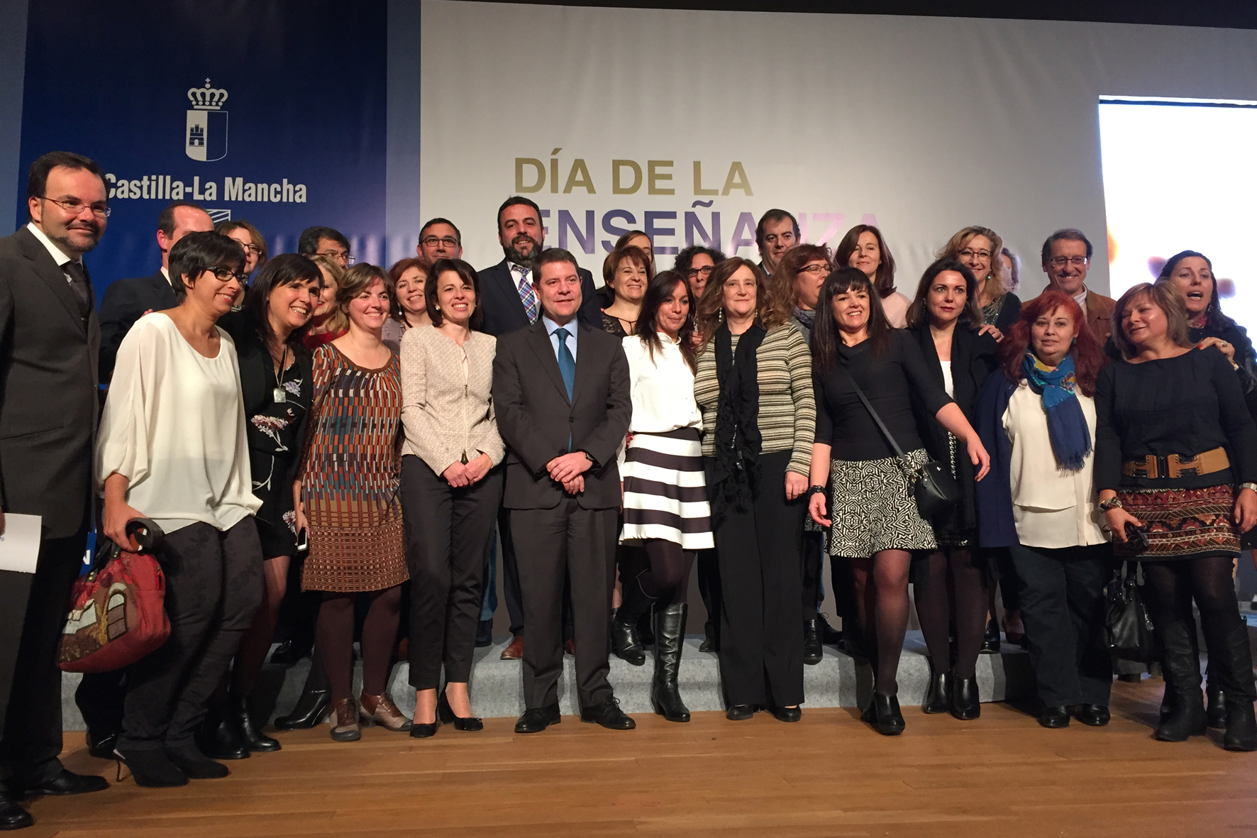 El alcalde de Azuqueca de Henares, José Luis Blanco, y la concejala de Educación e Infancia, Elisa Cansado, han acudido este viernes, 27 de noviembre, al acto organizado en Guadalajara para hacer entrega de los premios que concede la Junta de Comunidades de Castilla-La Mancha con motivo del Día de la Enseñanza 2015 y en el que también han participado el presidente de Castilla-La Mancha, Emiliano García Page, la consejera de Educación, Reyes Estévez, y el delegado de la Junta en Guadalajara, Alberto Rojo. Entre los galardonados de la provincia, se encuentran dos nombres vinculados a Azuqueca: el Instituto de Educación Secundaria San Isidro y Paco Catalán, director del Centro de Adultos Clara Campoamor, a los que ha felicitado el primer edil."Estos dos reconocimientos ponen de manifiesto que Azuqueca de Henares cuenta con unos centros y un profesorado muy involucrados en el crecimiento, no solo intelectual, sino también personal y social, de nuestros estudiantes, ya sean escolares, jóvenes o adultos", ha destacado José Luis Blanco, quien ha señalado que "estos premios son resultado de una larga trayectoria caracterizada por el trabajo intenso, la dedicación, la ilusión y el afán de superarse e innovar".Por su parte, la concejala de Educación e Infancia, Elisa Cansado, ha explicado que "estos premios son un aliciente para toda la comunidad educativa del municipio" y ha añadido que "el Ayuntamiento está muy orgulloso de la implicación y el dinamismo de los docentes, el alumnado y las familias de Azuqueca en la mejora de la Educación".