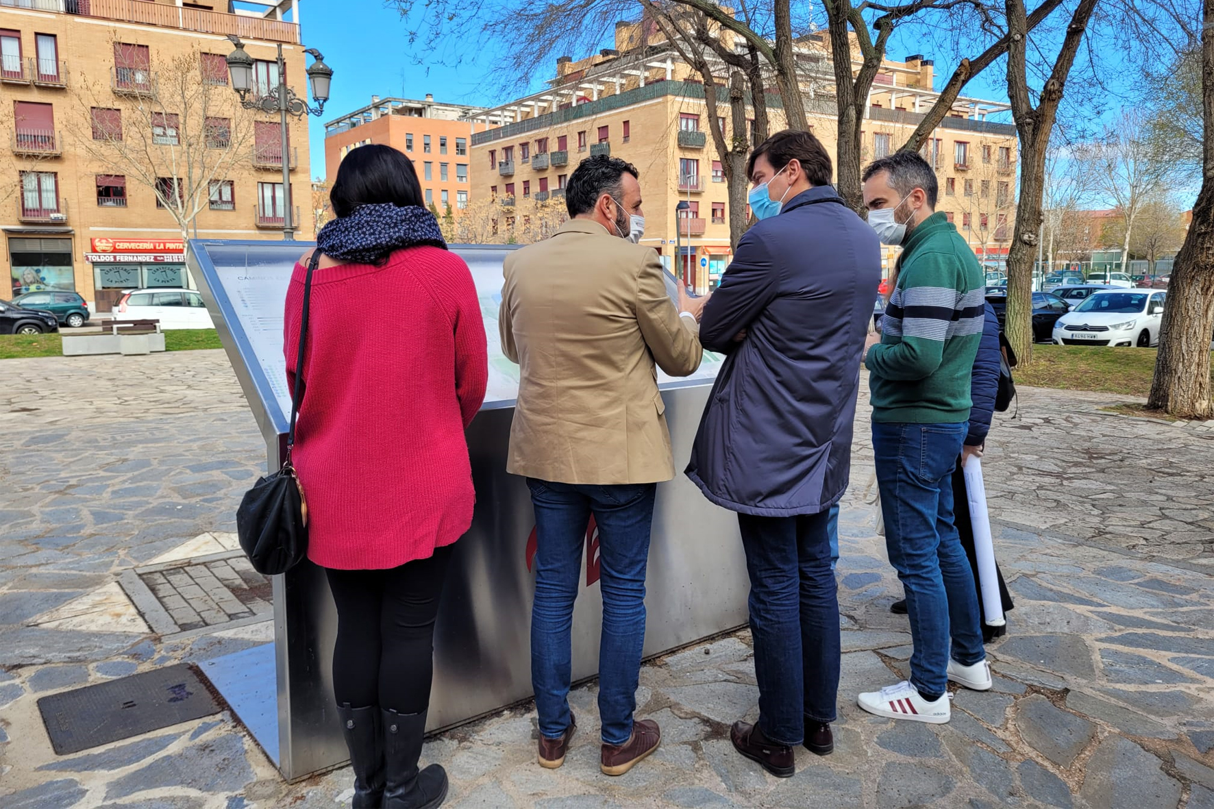 Visita al panel del proyecto municipal 'Caminos Escolares Seguros'. Fotografía: Ayuntamiento de Azuqueca