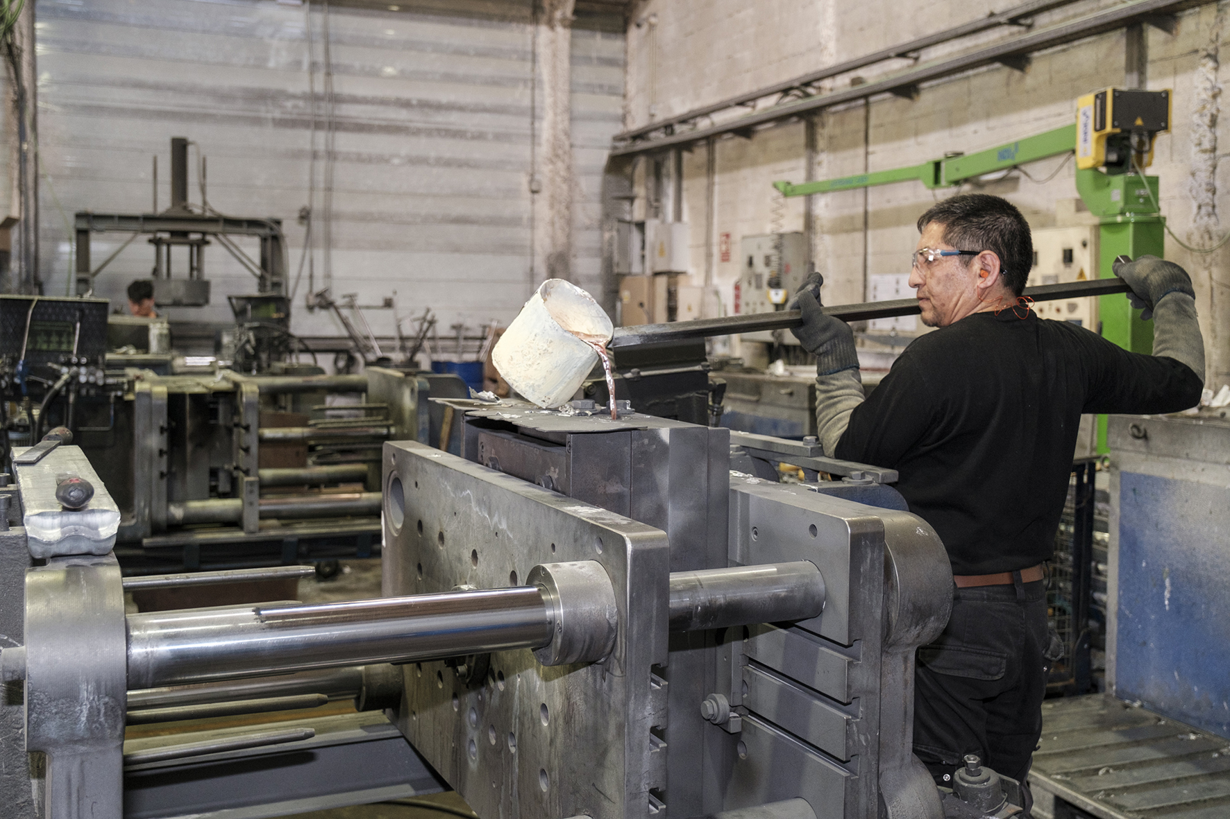 Uno de los trabajadores de Ditalen, durante el proceso de fundición del aluminio. Fotografía: Ayuntamiento de Azuqueca
