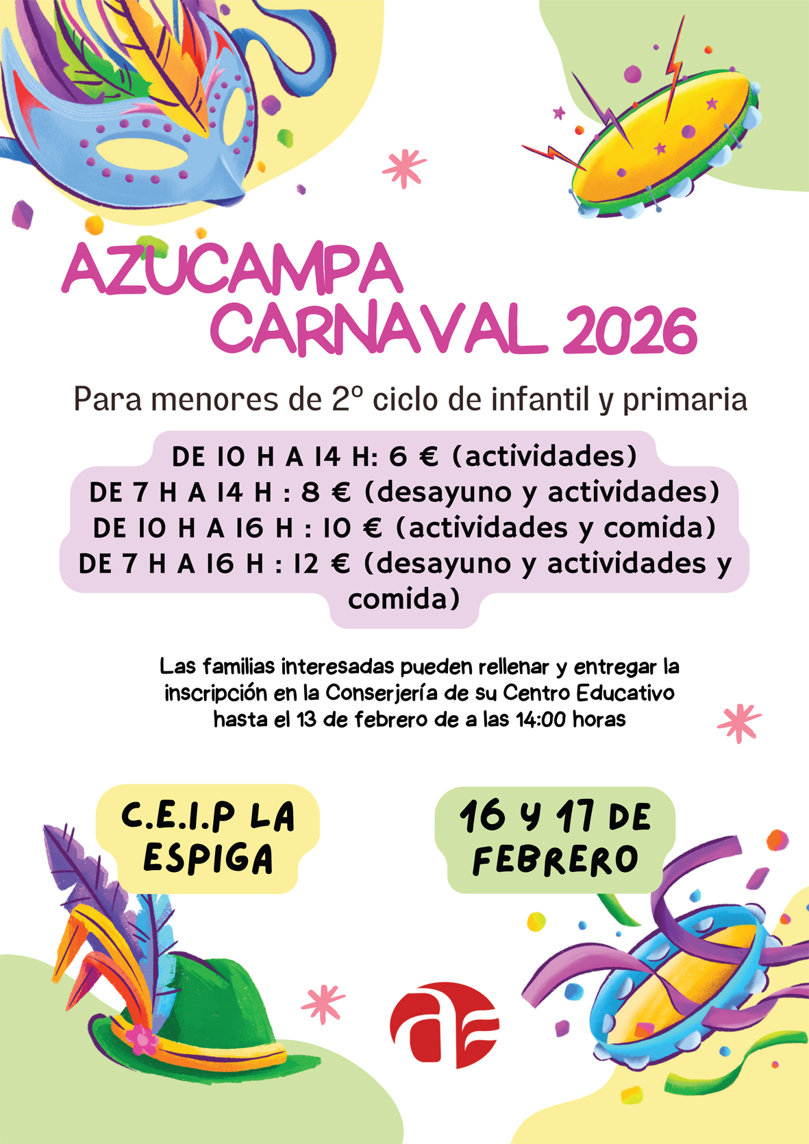 Con el objetivo de facilitar la conciliación, el Ayuntamiento de Azuqueca de Henares ha programado un campamento urbano para las jornadas no lectivas del Carnaval. De este modo, el Azucampa se desarrollará el lunes 16 y el martes 17 de febrero en las instalaciones del CEIP La Espiga.