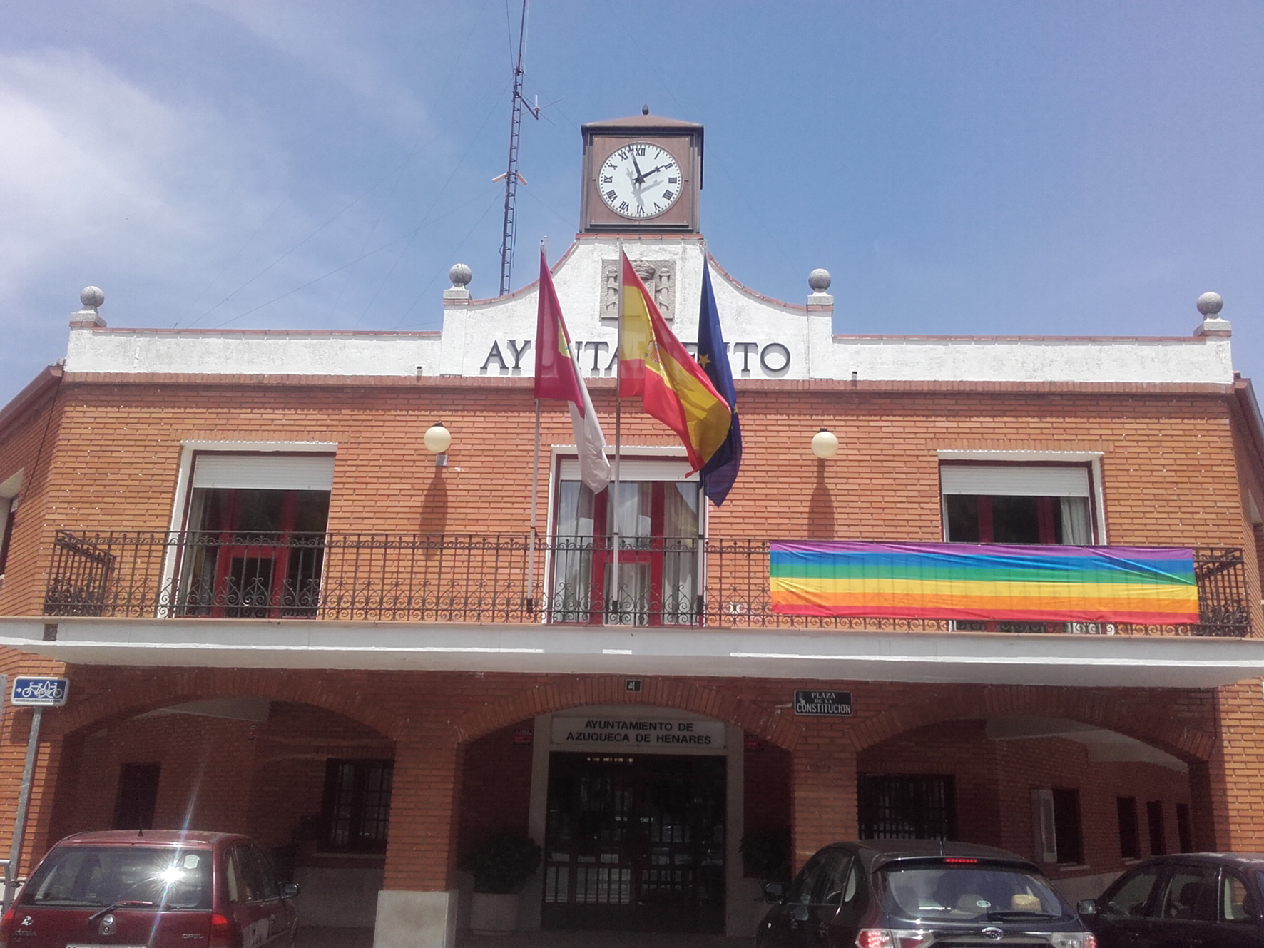 La bandera arcoíris que simboliza las reivindicaciones del colectivo LGTBI luce en balcón del Ayuntamiento de Azuqueca de Henares. El Consistorio se ha sumado con este gesto a la celebración del Día del Orgullo (28 de junio) , solo unos días después de que el Pleno aprobara por unanimidad, en su sesión del pasado día 9, una moción de los grupos municipales Socialista y de Ciudadanos con el fin de prevenir la discriminación por motivos de orientación sexual o afectiva y para favorecer la visibilidad de la diversidad sexual.Además, el Ayuntamiento ha programado la proyección de un ciclo de cine verde y LGTBI en el EJE (con las películas 'El amor es extrano' y 'La Chica Danesa') y el pasado viernes se presentó en el Centro de ocio el libro de Óscar Espirita 'El niño marica', en un acto en el que también se presentó el Club EACEC que engloba a aficionados al cine y a la literatura de temática LGTB.