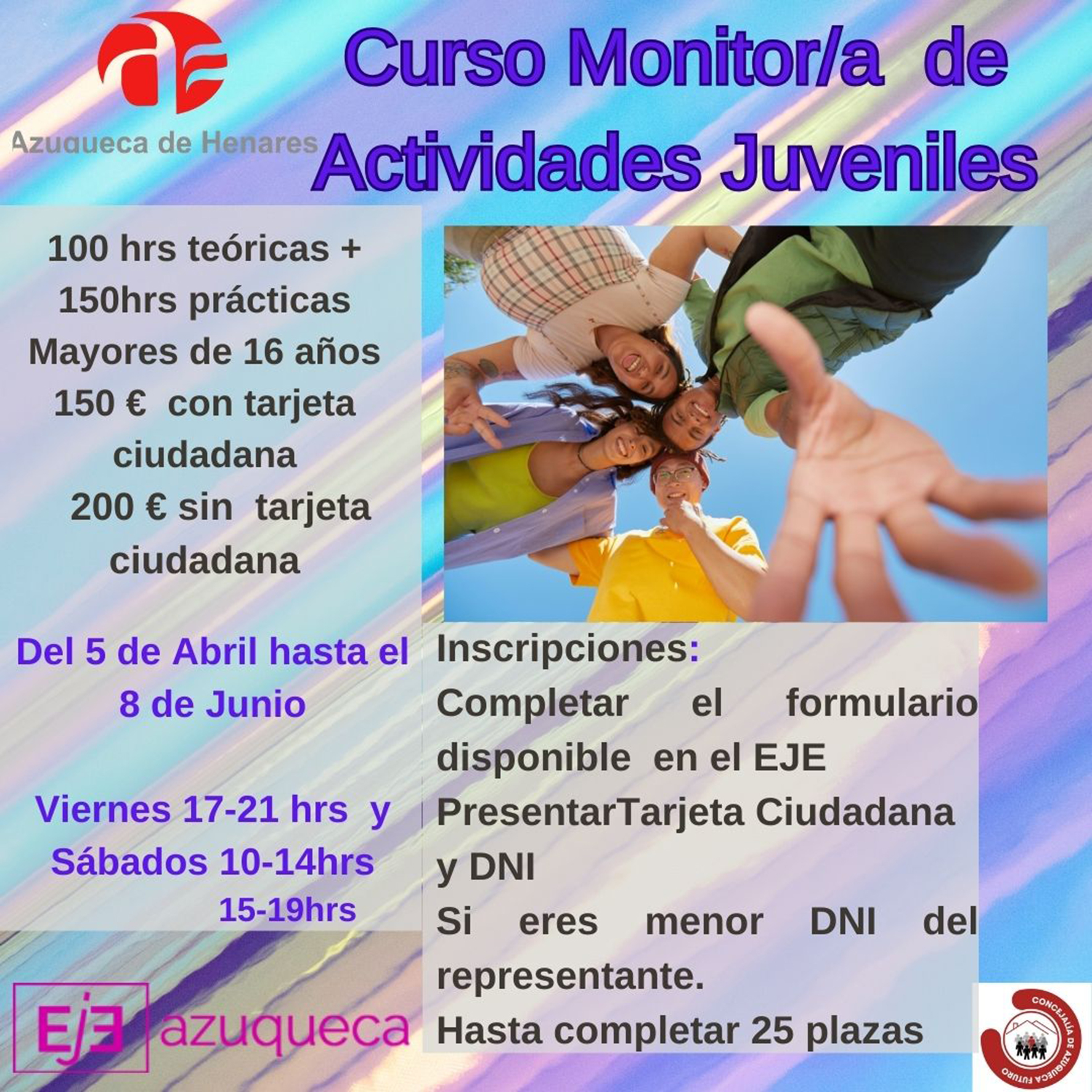 El Ayuntamiento de Azuqueca de Henares ha puesto en marcha la convocatoria de una nueva edición del curso  para la obtención del título de Monitor o Monitora de actividades juveniles. Se desarrollará entre el 5 de abril y el 8 de junio, los viernes por la tarde y los sábados en horario de mañana y tarde.