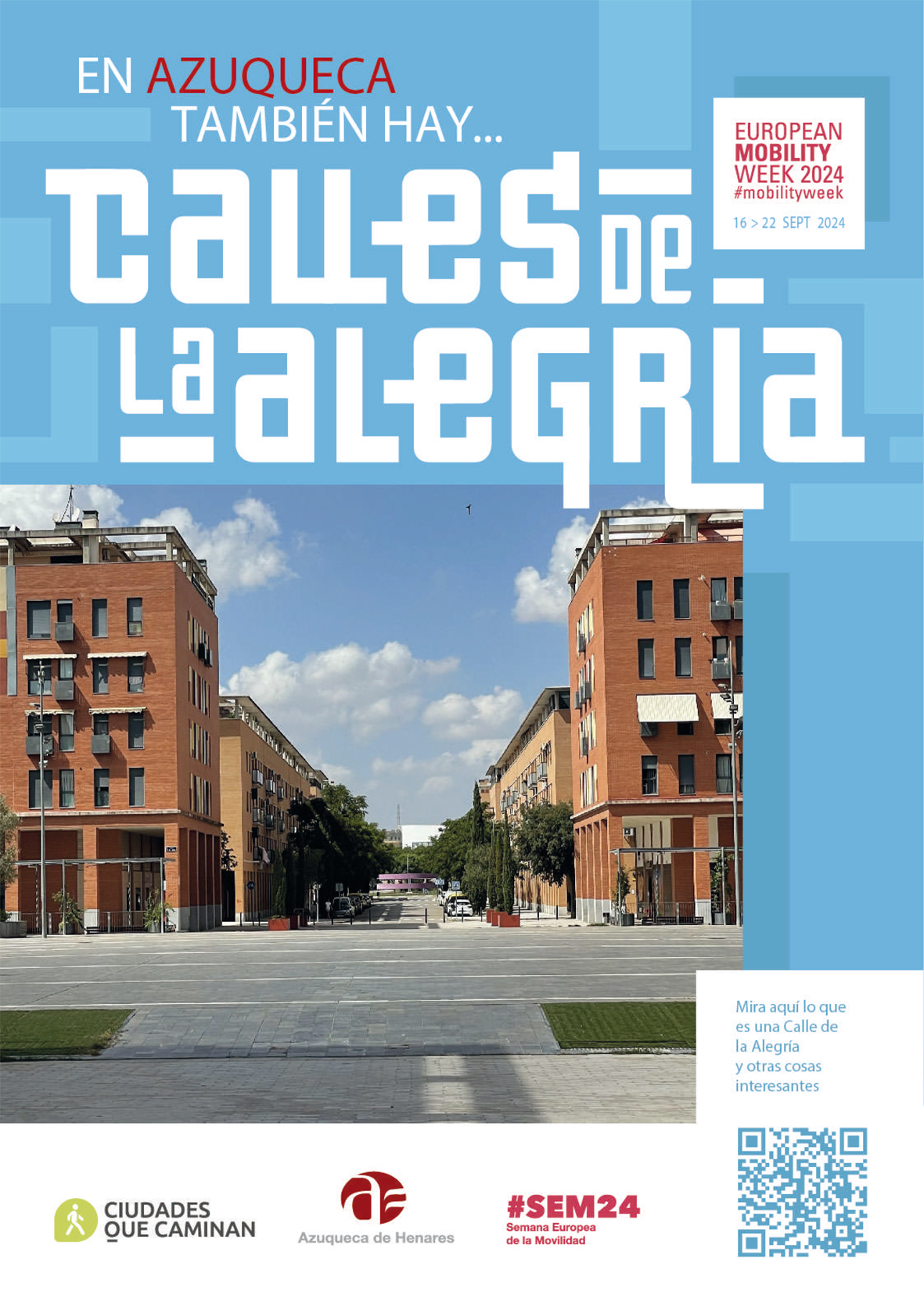 La cartelería utiliza la imagen de la Semana Europea de la Movilidad y se ha repartido entre las Peñas Públicas, los centros educativos y el Ayuntamiento. Incluye un código QR para acceder a la campaña “Calles de la alegría”, promovida por la Red de Ciudades que Caminan, de la que forma parte Azuqueca de Henares, y que se incluye dentro de esta semana con el objetivos, entre otros, ganar espacio público para las personas, conseguir un uso más racional del coche en los entornos urbanos y luchar contra el sedentarismo.