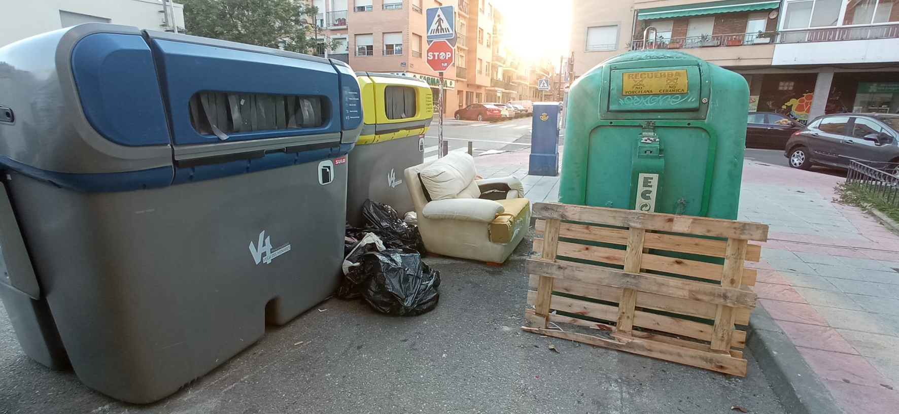 Objetos depositados junto a contenedores de residuos en la ciudad