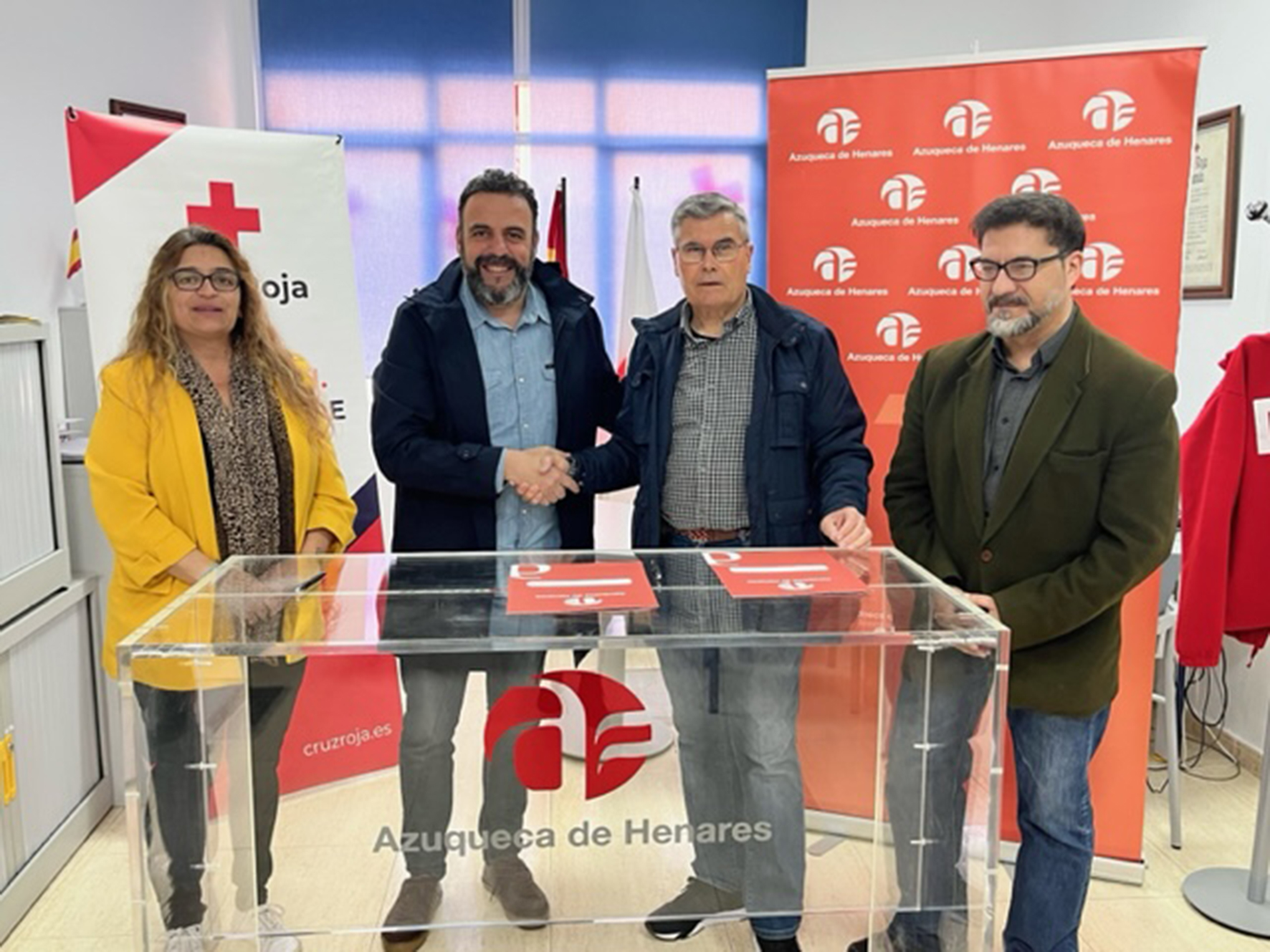 El alcalde de Azuqueca de Henares, José Luis Blanco, y el presidente de la Asamblea Local de Cruz Roja en la ciudad, Deogracias Quiles, han firmado la renovación del convenio de cesión de uso que permitirá que la organización humanitaria siga utilizando espacios municipales para sus actividades y para la prestación de servicios a la población. El alcalde ha destacado la “magnífica labor que realiza Cruz Roja en Azuqueca de Henares, colaborando de manera estrecha con el Ayuntamiento para atender a las personas que más lo necesitan”. El primer edil ha precisado que en torno a 2.000 personas, muchas de ellas pertenecientes a familias con menores, reciben atención a través de los distintos programas de Cruz Roja desarrolla en Azuqueca.