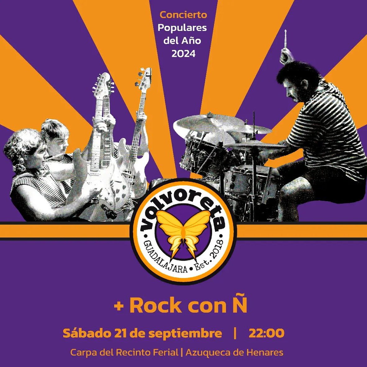 Además, el sábado 21, el grupo local Volvoreta, nombrado Popular del Año, junto con el equipo femenino de la Unión Deportiva Azuqueca Fútbol Sala (más información, pinchando AQUÍ), actúa a las 22 horas en la carpa instalada en el Recinto Ferial. A continuación, se podrá ver en el escenario a Rock con Ñ, grupo que “reúne a miembros de bandas legendarias del rock español y recupera canciones de la movida del rock de los 80”, avanza la edil. Los conciertos son gratuitos.