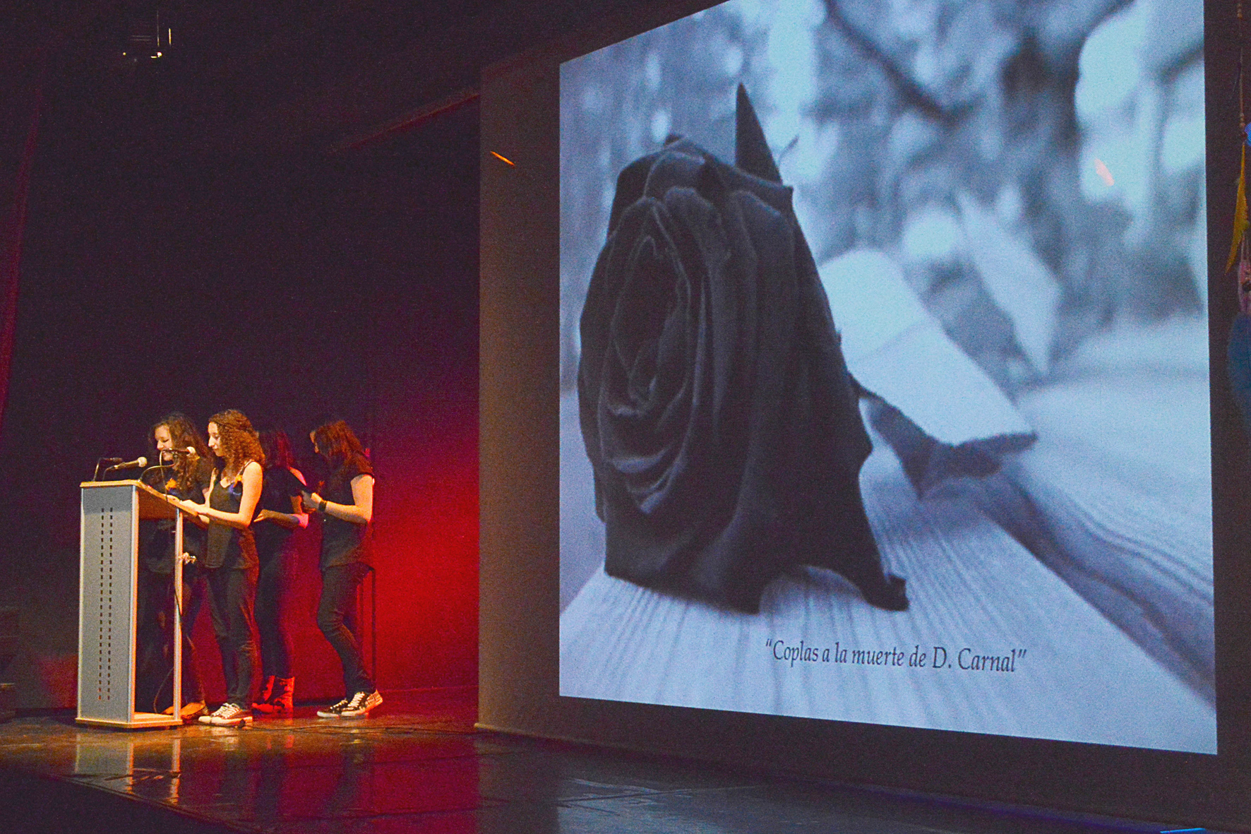 La Casa de la Cultura ha acogido esta mañana la segunda edición del maratón de poesía 'Hilando versos'. "La convocatoria ha vuelto a ser todo un éxito ya que se han sumado más de 300 personas, en su mayoría estudiantes de los institutos de la localidad, pero también niños y niñas del colegio Virgen de la Soledad y algunos vecinos y vecinas que han querido participar", afirma la concejala de Cultura, Sandra Yagüe, quien destaca la puesta de escena: "el escenario, iluminado con una tenue luz, ha permitido proyectar en la pantalla imágenes relacionadas con los poemas, que se han recitado de manera individual o en grupo y acompañados de música en directo de piano o guitarra".La edil azudense ha agradecido la participación y ha destacado el nivel de los autores elegidos, entre los que se encontraban Lope de Vega, Jorge Manrique, Antonio Machado, Federico García Lorca, o Julio Benedetti. Este maratón es una de las actividades contempladas en el programa 'LecturArte: el sabor de la lectura y otros placeres', que desde el mes de febrero desarrolla la Biblioteca Municipal Almudena Grandes para "acercar los libros a la población en general y, en especial, a los jóvenes". Para ello, "se han organizado encuentros con autores, talleres, conferencias, este maratón o Juegos Literarios, entre otras propuestas", recuerda Yagüe. El programa finaliza el 19 de mayo con Carmen Gil, autora de literatura infantil, que celebrará sesiones con los colegios azudenses sobre su libro Brujas.