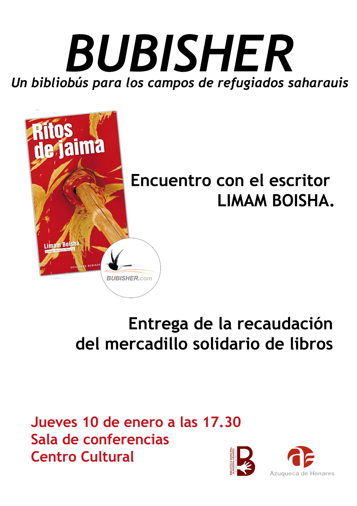 La Biblioteca Municipal de Azuqueca de Henares organiza el 10 de enero un nuevo encuentro con autor, a partir de las 17:30 horas, en la sala de conferencias de la Casa de la Cultura. “En esta ocasión, hemos invitado al poeta saharaui Limam Boisha, que presentará el libro ‘Ritos de jaima’”, avanza la concejala de Cultura, Sandra Yagüe.El acto, además de dar a conocer esta obra centrada en las tradiciones del pueblo saharaui, servirá para hacer entrega del dinero recaudado en el mercadillo solidario de libros celebrado del 10 al 14 de diciembre a beneficio del proyecto ‘Bubisher: un bibliobús para los campamentos de refugiados saharauis’. “Precisamente, los beneficios de la venta del libro de Limam Boisha se destinan a sostener dicho proyecto, con el que ya colaboramos el año pasado”, aclara la edil azudense, quien anima a los vecinos a asistir a este encuentro con autor.Sandra Yagüe recuerda que la iniciativa, organizada por la Biblioteca Municipal Almudena Grandes y los Clubes de Lectura, logró recaudar 1.150 euros a través de la venta de libros donados por los ciudadanos o retirados del catálogo de la Biblioteca con precios muy asequibles, a partir de 1 euro. “Este mercado se puso en marcha hace ya cuatro años y repetimos porque siempre obtiene muy buena acogida”, destaca.