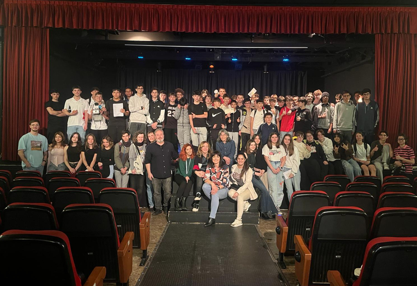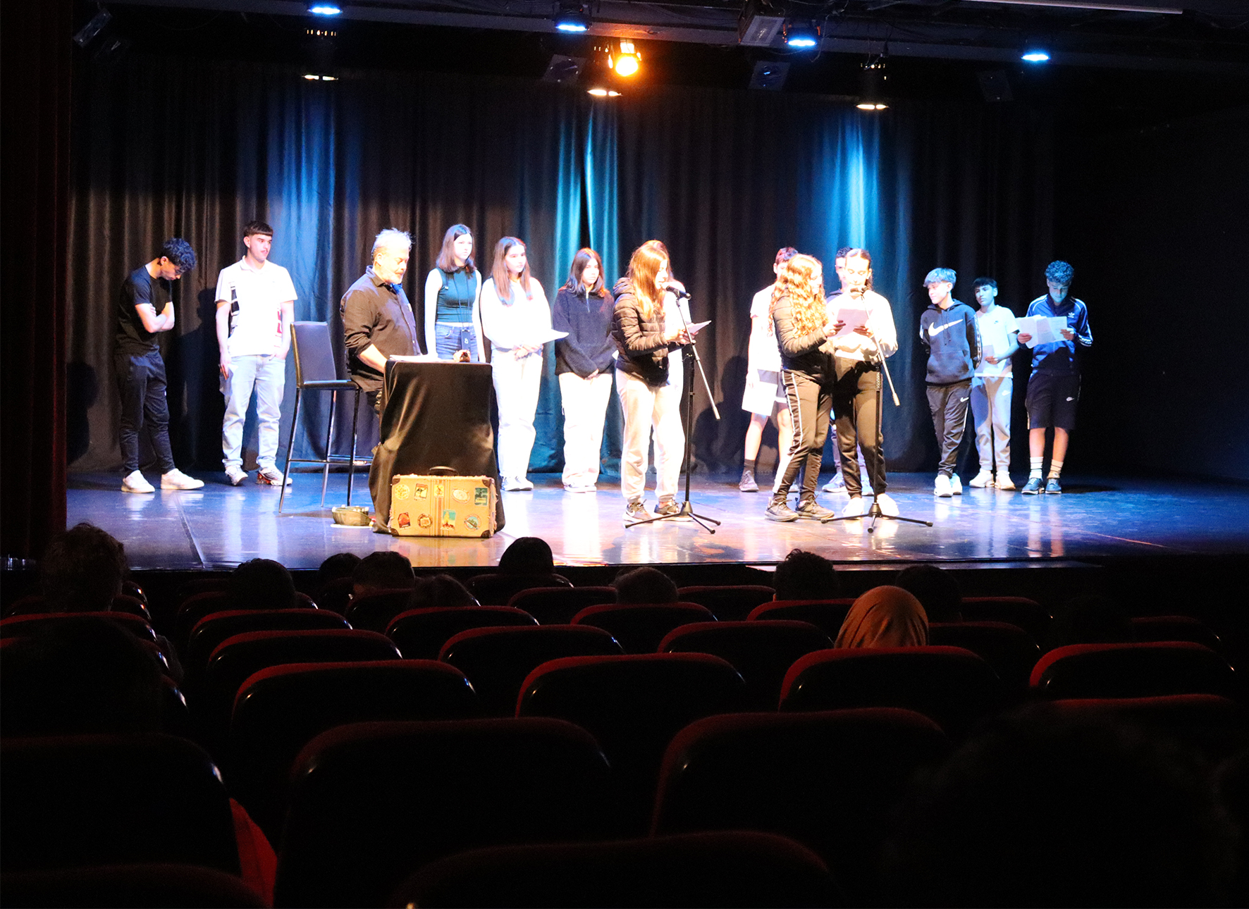 Un grupo de estudiantes, sobre el escenario de la Casa de la Cultura