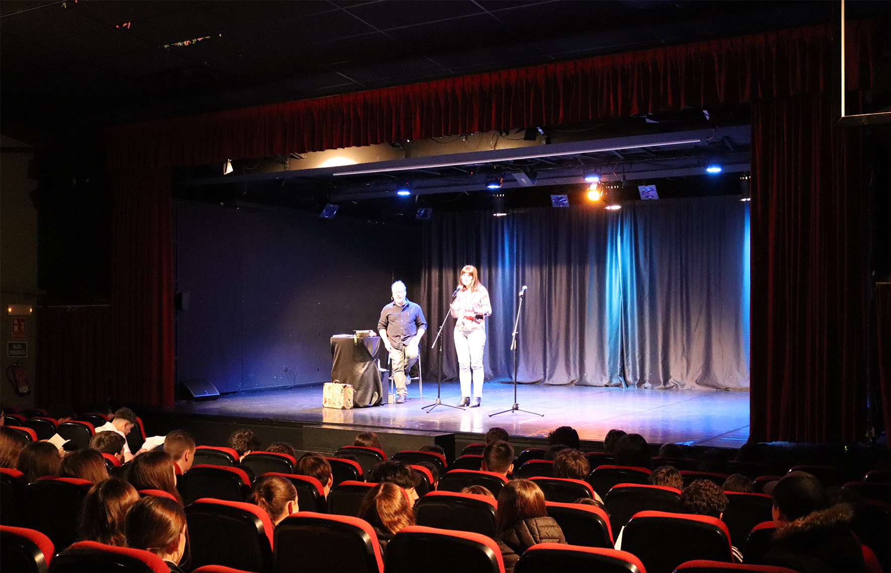 Bajo el lema "Del corazón a los asuntos", esta mañana se ha celebrado en la Casa de la Cultura de Azuqueca de Henares el VIII Maratón de “Hilando Versos”, para conmemorar el Día de la Poesía. El acto lo ha organizado la Biblioteca municipal Almudena Grandes y en él medio centenar de estudiantes de 2º a 4º de Educación Secundaria Obligatoria (ESO) y de FP básica del IES Profesor Domínguez Ortiz se han subido sobre el escenario y han recitado poemas de distintos autores y autoras, entre ellos, Miguel Hernández, homenajeado en este maratón. Como público ha asistido al recital un grupo de estudiantes del mismo centro.