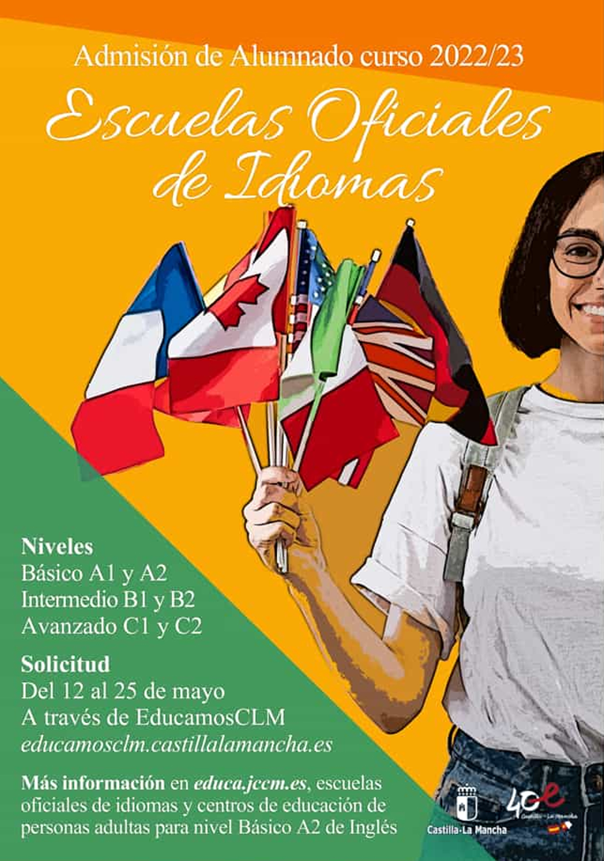 Desde este jueves día 12 y hasta el miércoles 25 de mayo, se puede solicitar plaza en la extensión de la Escuela Oficial de Idiomas (EOI) de Guadalajara ubicada en Azuqueca de Henares. Como novedad, de cara al curso 2022/2023, se amplía la enseñanza con la incorporación del nivel Avanzado C2 de inglés, tal y como autorizó la Viceconsejería de Educación de la Junta de Comunidades en la resolución publicada el 11 de abril en el Diario Oficial de Castilla-La Mancha (DOCM).