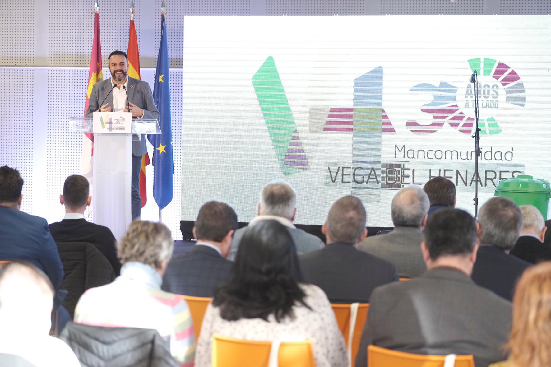 Azuqueca de Henares ha acogido este miércoles, 13 de diciembre, el acto institucional organizado por la Mancomunidad Vega del Henares (MVH) con motivo de su 30 aniversario. La Mancomunidad, que entró en funcionamiento en 1993, se centra en la recogida de residuos sólidos urbanos y presta servicio a más de 80.000 personas de nueve municipios: Alovera, Azuqueca de Henares, donde se encuentra la sede de la MVH desde su creación; Cabanillas del Campo, Chiloeches, Fontanar, Marchamalo, Quer, Villanueva de la Torre y Yunquera de Henares.