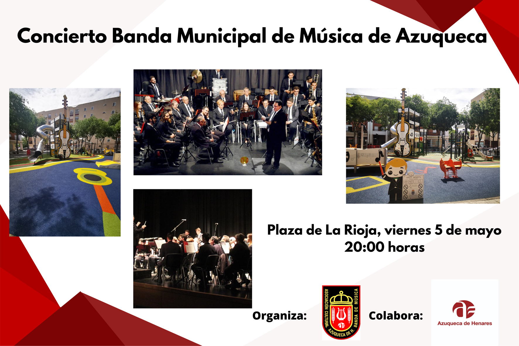 La Asociación Cultura Banda de Música de Azuqueca de Henares, en colaboración con el Ayuntamiento, organiza este viernes, 5 de mayo, un concierto en la plaza de La Rioja a partir de las 20 horas. En este punto, se ha renovado la zona infantil y se han instalado nuevos elementos de juego con la música como temática.