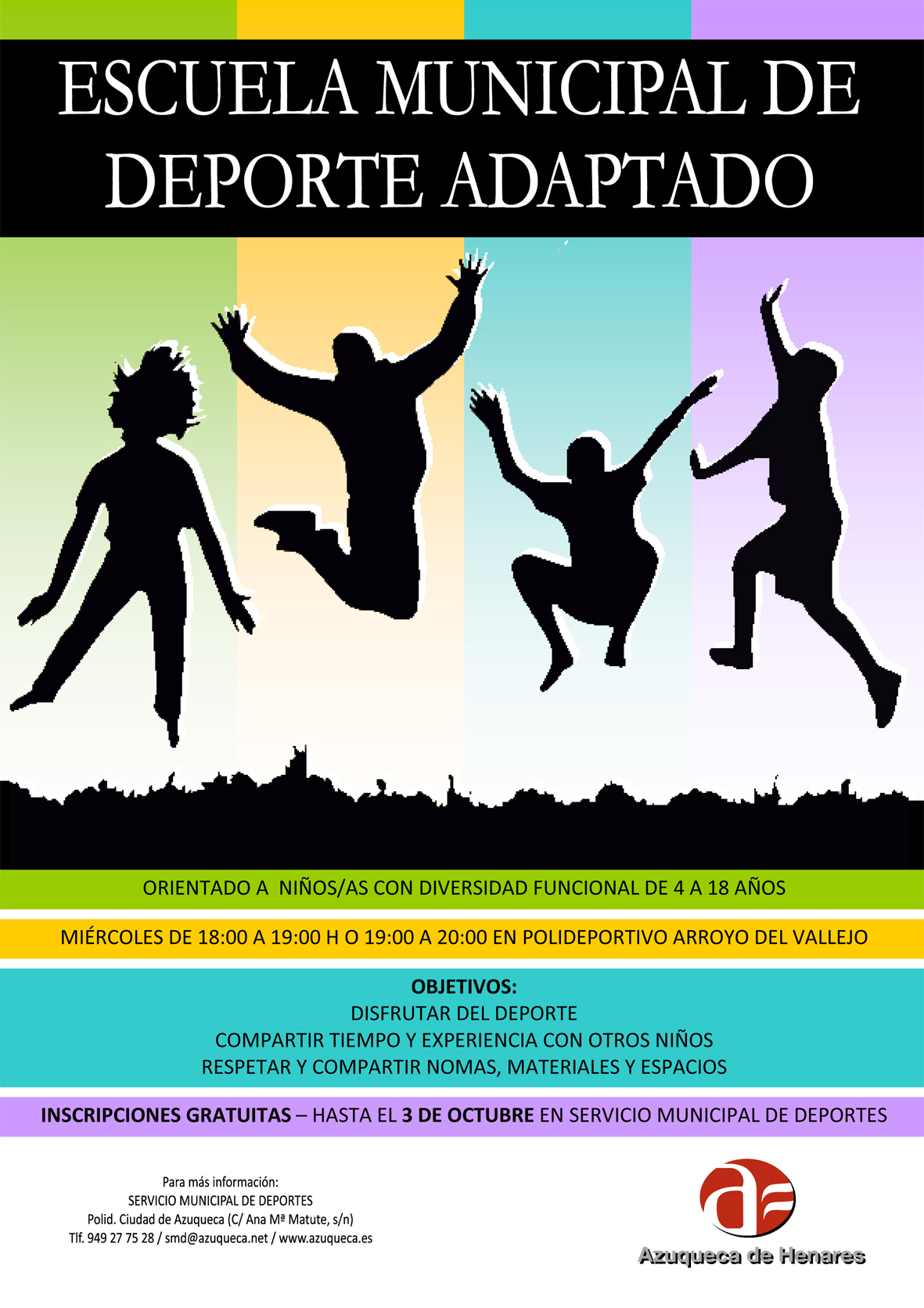 El Ayuntamiento de Azuqueca de Henares ha ampliado la oferta de la temporada 2014/2015 con la incorporación de una nueva actividad: la Escuela Municipal de Deporte Adaptado. "Se trata de una propuesta gratuita dirigida a niños y niñas con diversidad funcional", explica el concejal de Deportes, José Luis Escudero, quien destaca "la satisfacción y la buena acogida que han mostrado las familias ante la puesta en marcha de esta escuela". Las clases, que se van a impartir en el pabellón Ciudad de Azuqueca, comienzan este miércoles 5 de noviembre. "Se han inscrito un total de 17 niños y niñas que se han repartidos en tres grupos", detalla el edil. Las sesiones, de 45 minutos de duración, estarán coordinadas por dos monitores y trabajarán distintas disciplinas. "El objetivo es fomentar la autonomía y, para ello, se van a practicar deportes variados ya que cada uno puede ayudar a mejorar distintos aspectos", adelanta José Luis Escudero."El deporte no solo es un hábito saludable o una diversión, sino que también transmite valores, como el compañerismo o el respeto a unas normas, a la vez que fomenta la integración y la cohesión social, permite romper barreras y potencia la igualdad", insiste el responsable municipal del área.En este sentido, el edil recuerda que "desde hace años, los chicos y chicas de ADA (Asociación de padres y madres de personas con Discapacidad de Azuqueca) disponen de la Escuela de Deportes sin Barreras, donde pueden practicar fútbol, baloncesto y, como novedad de esta temporada, pádel"."Las sesiones de Deporte Adaptado y Deporte sin Barreras resultan beneficiosas para sus alumnos y alumnas, pero también para el resto de niños y niñas de las Escuelas, que pueden tomar a sus compañeros como un ejemplo de superación y de esfuerzo", concluye el edil.