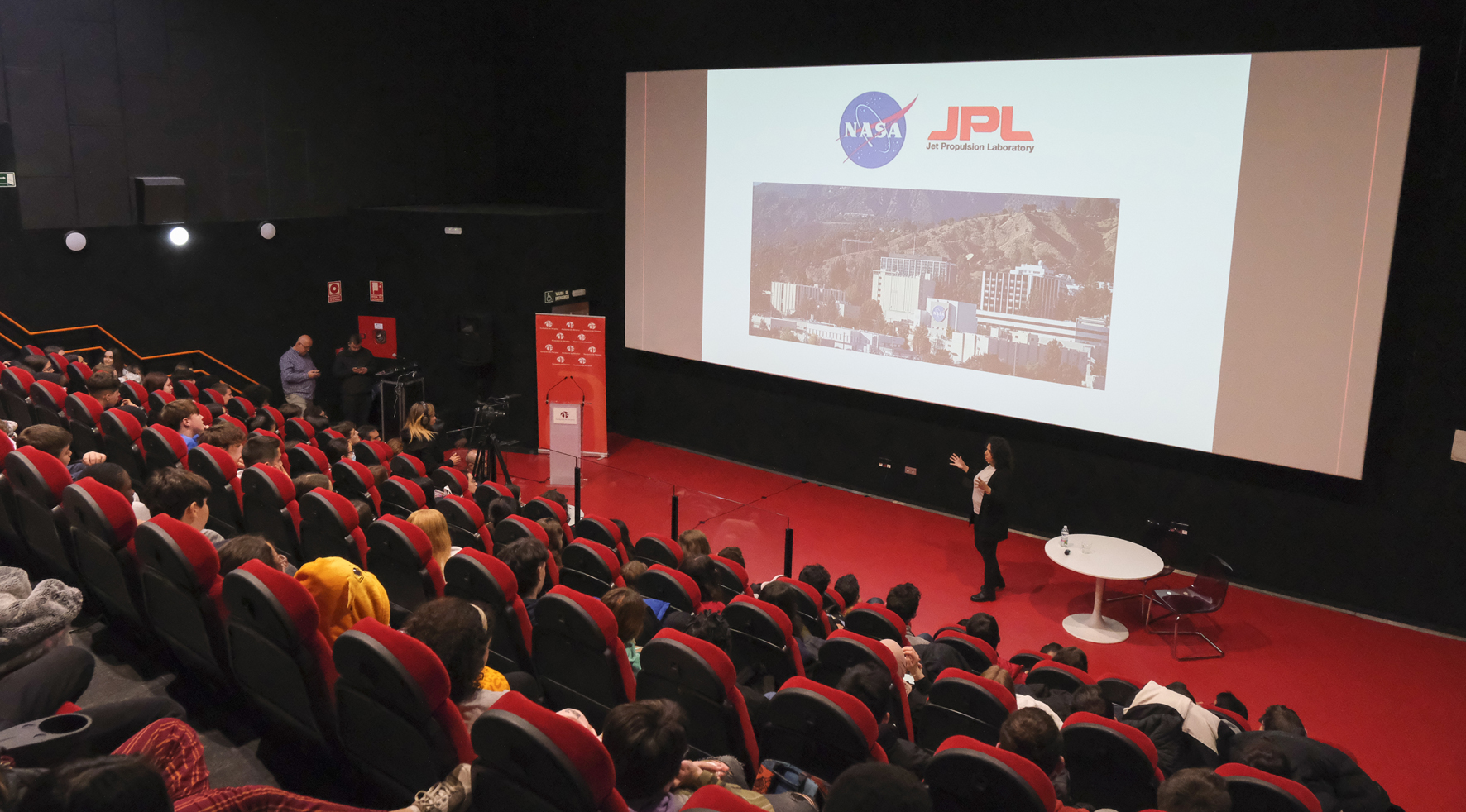 En su intervención, Verónica Peinado ha repasado las diferentes misiones espaciales en Marte en las que ha colaborado (Curiosity, Insight y Perseverance) a través del Centro de Astrobiología (CAB) y se ha referido a todo el trabajo previo necesario (diseño, fabricación y pruebas, que se realizan antes del lanzamiento, durante el viaje a Marte y después del aterrizaje). Veronica ha insistido en la importancia de formarse en un tema que guste. “Así, podréis trabajar en algo que os guste, que es maravilloso”, ha dicho al alumnado asistente. También ha reconocido que ha llegado a este trabajo “con suerte, pero con la ayuda de una buena preparación y de asumir riegos”.