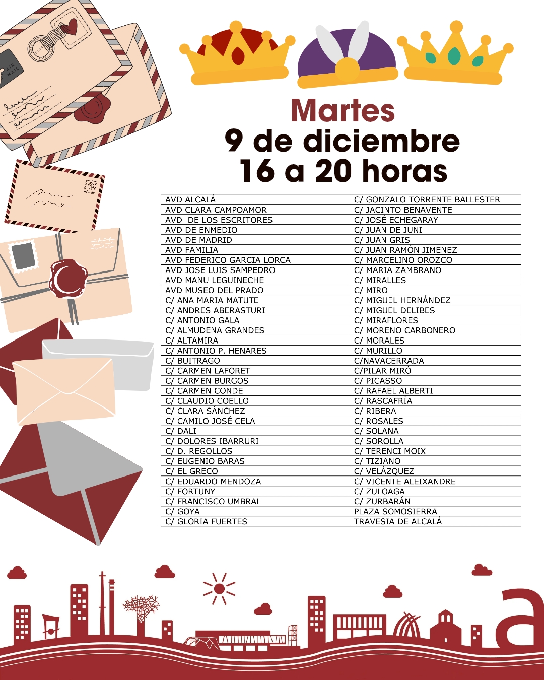 Un año más, los Pajes Reales de Sus Majestades Melchor, Gaspar y Baltasar van a visitar Azuqueca de Henares para recoger en mano y a domicilio las cartas de deseos de los niños y niñas de la ciudad. Desde el martes 9 y hasta el sábado 13 de diciembre, recorrerán las calles en el siguiente horario: martes 9, miércoles 10, jueves 11 y viernes 12, por las tardes, de 16 a 20 horas, y el sábado 13, por la mañana, de 10:30 a 14 horas y con la colaboración de ADA (Asociación de Padres, Familiares y Amigos de Personas con Discapacidad Intelectual y/o del Desarrollo de Azuqueca).