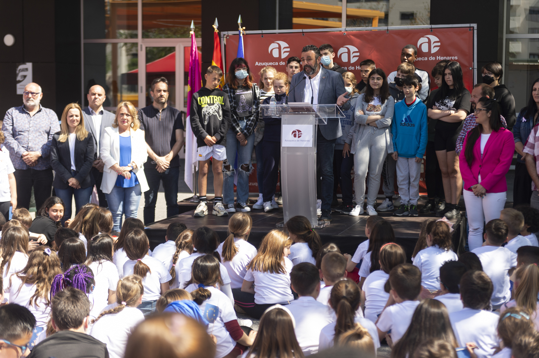 Con motivo del Día de Europa, que se conmemora este lunes, 9 de mayo, el Ayuntamiento de Azuqueca de Henares ha organizado en el Espacio Joven Europeo (EJE) distintas actividades con los centros educativos de la ciudad. Durante la mañana, el alumnado de los colegios de la ciudad ha participado en juegos, talleres y concursos sobre Europa y, posteriormente, han asistido a la lectura del manifiesto, a cargo del alcalde, José Luis Blanco, acompañado por delegados y subdelegados de los institutos. Asimismo, han estado presentes los concejales y concejalas del Equipo de Gobierno y de la oposición.