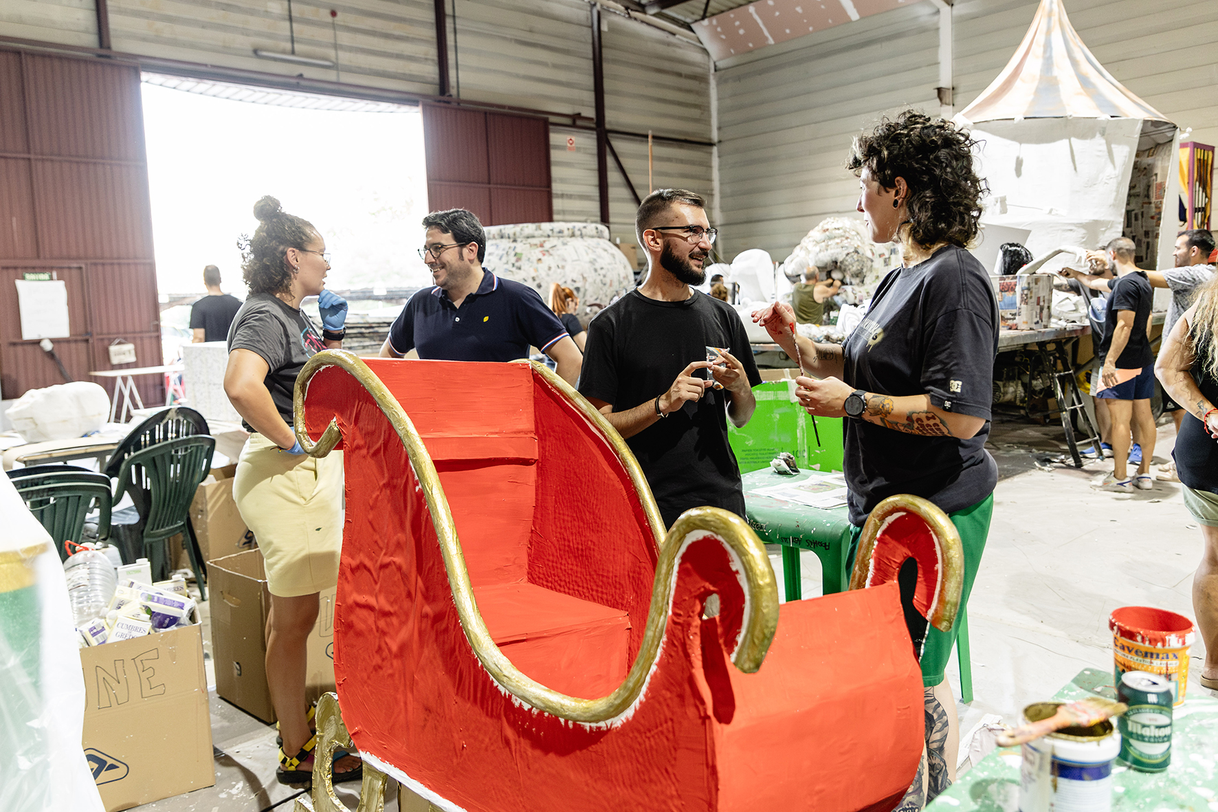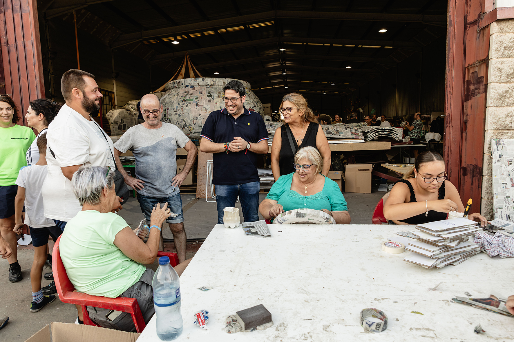 El alcalde, acompañado de los concejales de Fiestas y Sostenibilidad, ha visitado las naves donde se ultiman los detalles del Desfile de las Fiestas