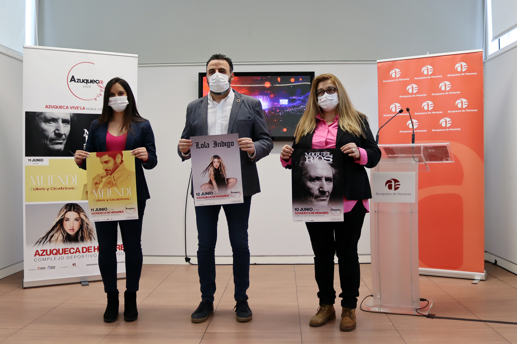El alcalde de Azuqueca de Henares, José Luis Blanco, junto con la concejala de Educación Global, Susana Santiago, y la edil de Desarrollo Saludable, Charo Martín, ha presentado este jueves, 10 de marzo, ‘Azuqueca, vívela’, “un festival de música de altura, con artistas de primer nivel y de gran éxito nacional e internacional”. Se celebrará el fin de semana del 10, 11 y 12 de junio en el complejo San Miguel y contará con la presencia de Miguel Ríos, Melendi y Lola Índigo.