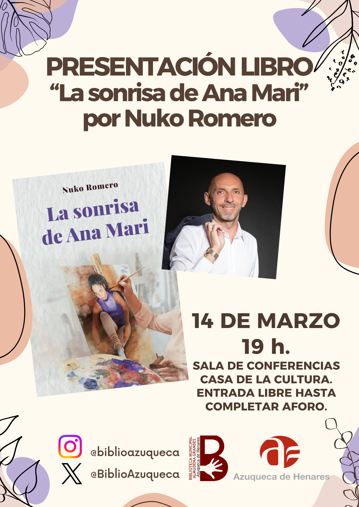 Nuko Romero presenta su libro “La sonrisa de Ana Mari” en la Biblioteca Municipal de Azuqueca de Henares.