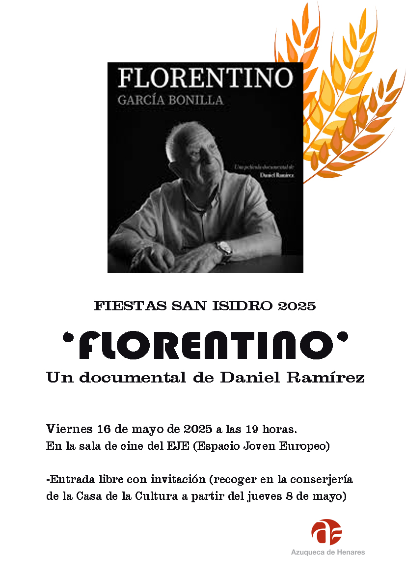 Proyección de la película documental 'Florentino', realizada por el director azudense Daniel Ramírez, que repasa la vida del que fuera alcalde de Azuqueca de Henares durante veintiocho años.