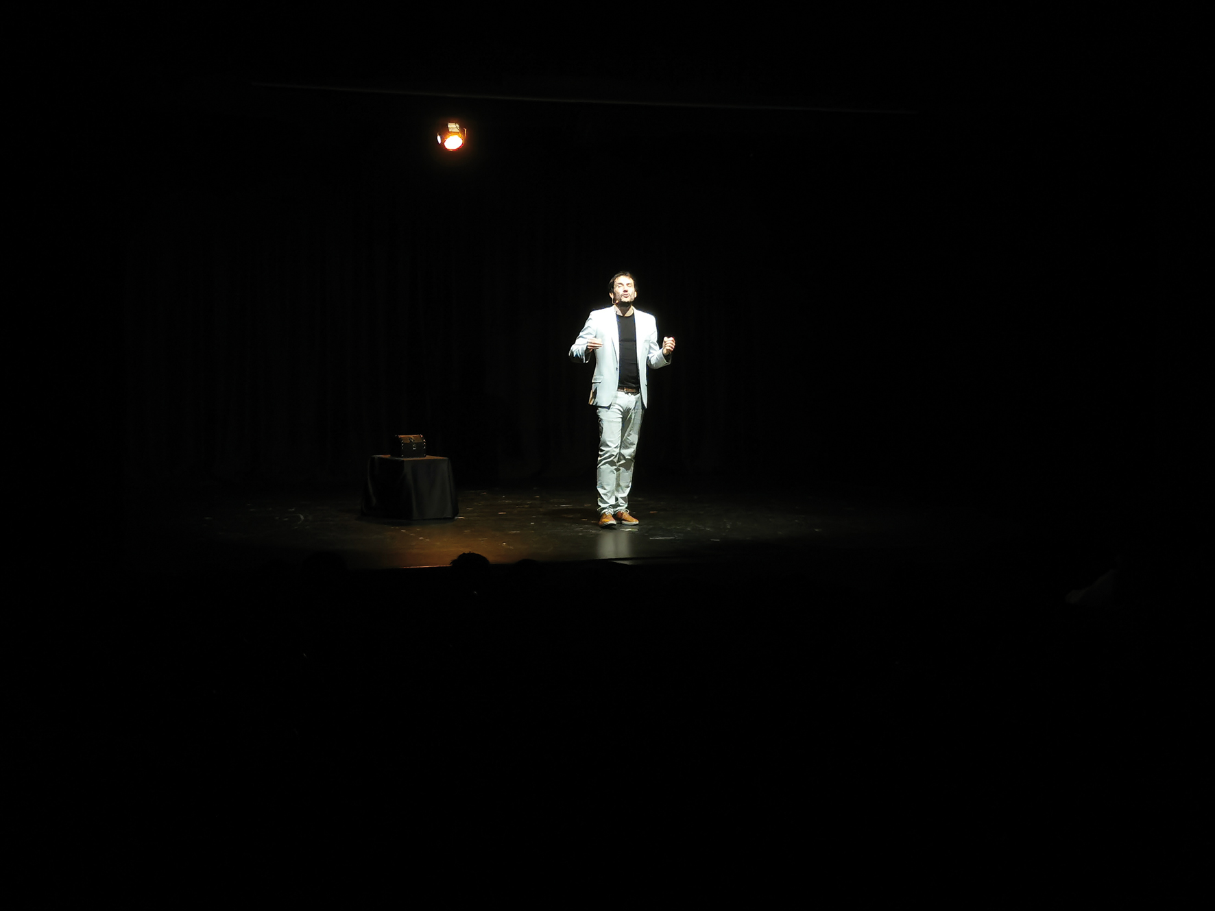 Un momento de la sesión con Héctor Urién sobre el escenario. Fotografía: Ayuntamiento de Azuqueca