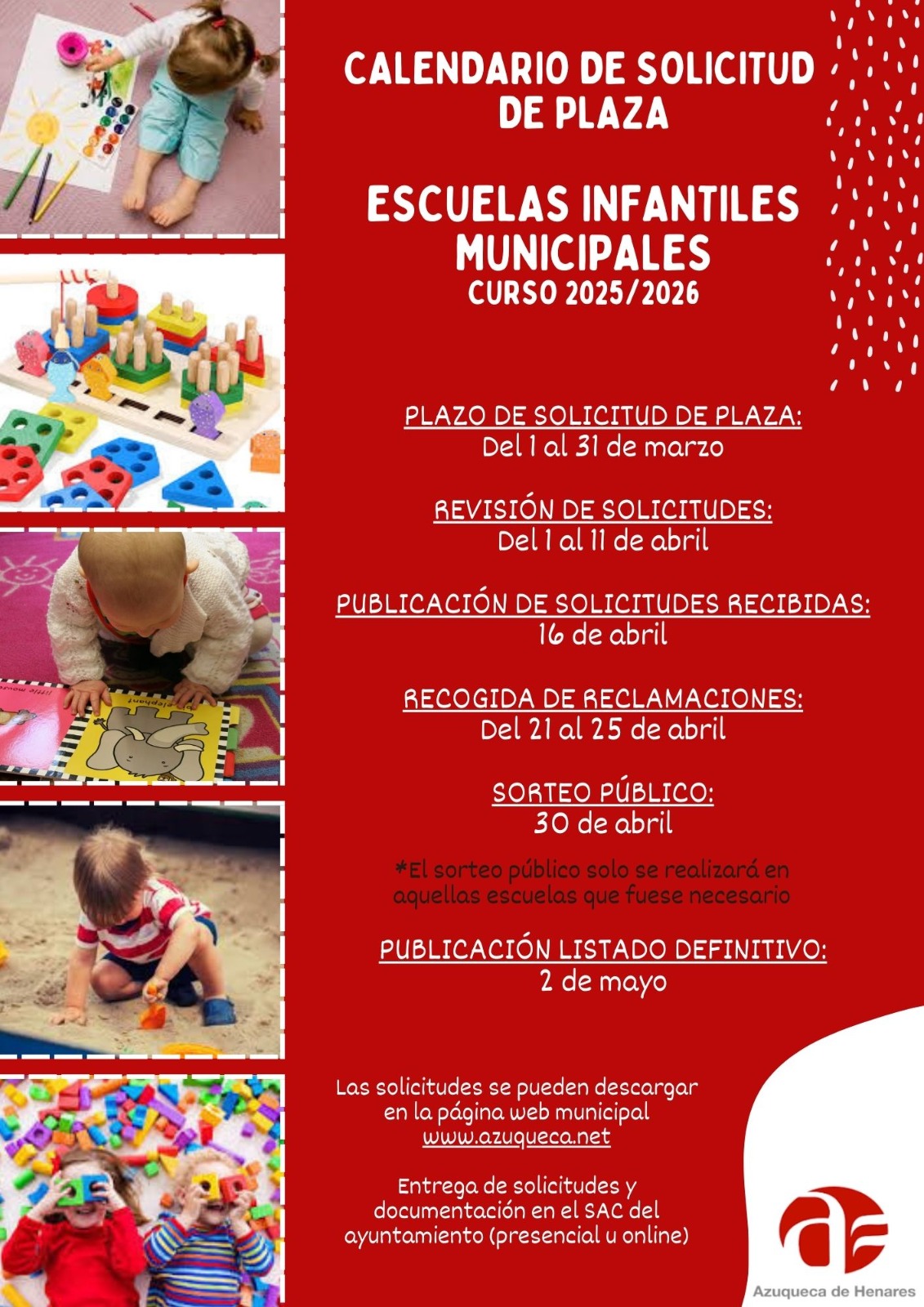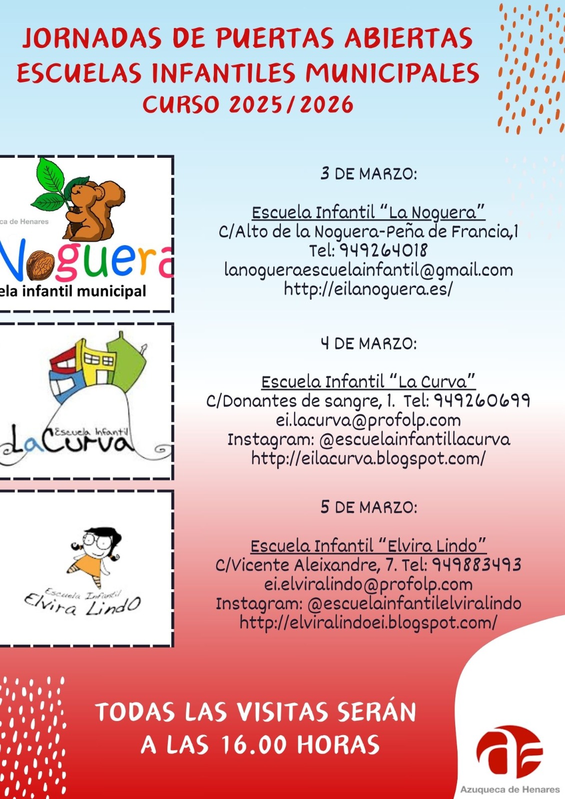 Azuqueca cuenta con 336 plazas públicas en Escuelas Infantiles para niñas y niños de 0 a 3 años, lo que le convierte en el municipio de la provincia, por delante incluso de la capital alcarreña, con mayor cobertura pública en este terreno. Las plazas disponibles se reparten en tres centros municipales: “E.I. LA NOGUERA”, “E.I. LA CURVA” y “E.I. ELVIRA LINDO.