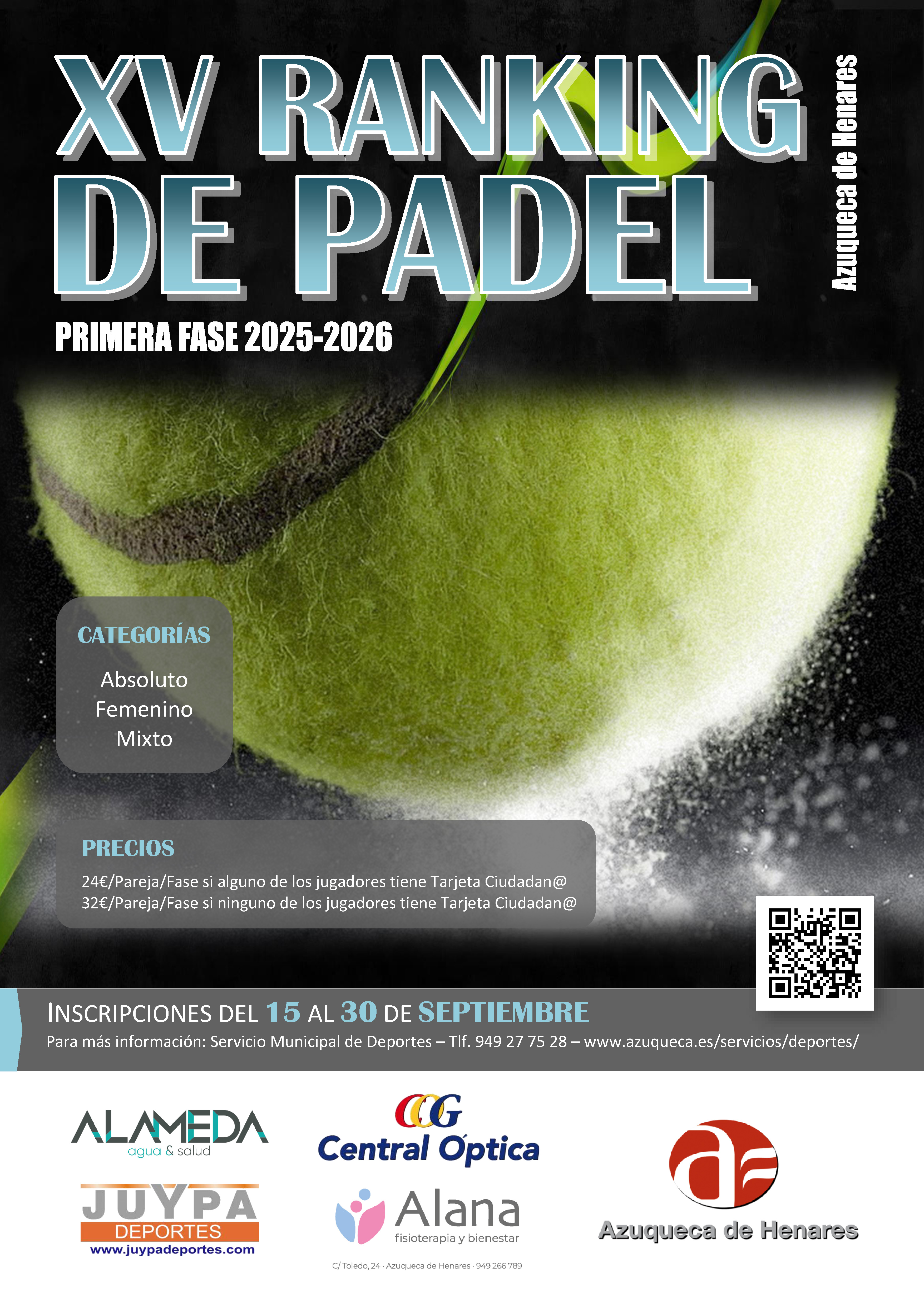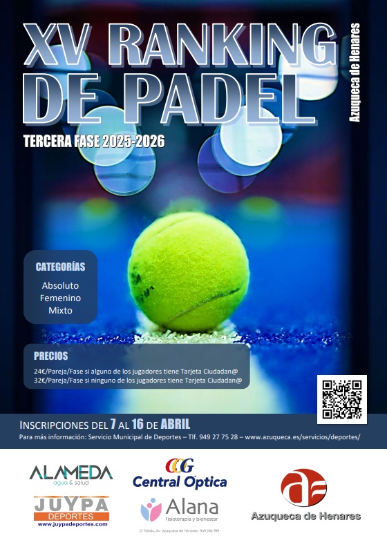 En el año 2010, el Ayuntamiento de Azuqueca de Henares puso en marcha por primera vez el Ranking de Pádel de Azuqueca de Henares. Se trata de una liga regular con diferentes categorías en función del nivel de las parejas participantes. La competición se divide en fases, y al finalizar cada una, se producen ascensos y descensos en cada uno de los grupos. Los partidos se disputan en las 14 pistas de pádel con que cuenta el municipio (seis se ubican en el Complejo San Miguel y ocho, en la zona deportiva 'Arroyo del Vallejo').